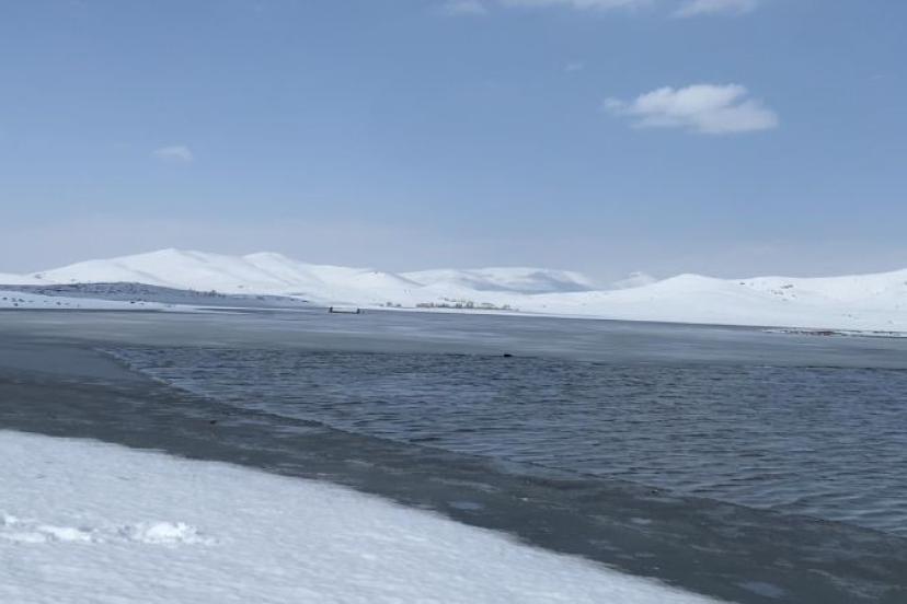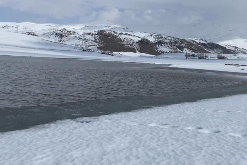 Patnos Barajı, karla örtülü dağlar ve mavi rengiyle büyüledi
