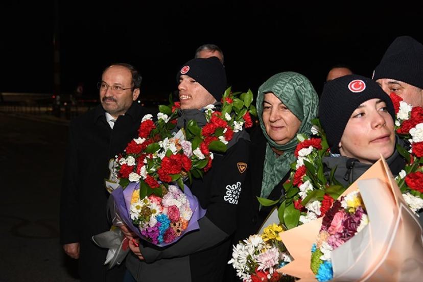 Avusturya’dan dört madalya ile Erzurum’a dönen Bingül kardeşler için havalimanında karşılama töreni düzenlenirken alanda ETÜ Rektörü Prof. Dr. Bülent Çakmak’ın yanı sıra çok sayıda akademisyen ve öğrenci yer aldı.