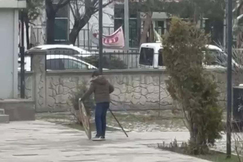 Kaymakamlık bahçesinde bulunan Atatürk Anıtı önüne, Horasan İlçe Emniyet Müdürlüğü tarafından bırakılan çelenk, program sonrası etkisini artıran şiddetli rüzgâr nedeniyle devrilerek yere düştü. Tören alanının boşalmasının ardından bölgeden geçen 12-13 yaşlarındaki bir genç, yere düşen çelengi fark etti.