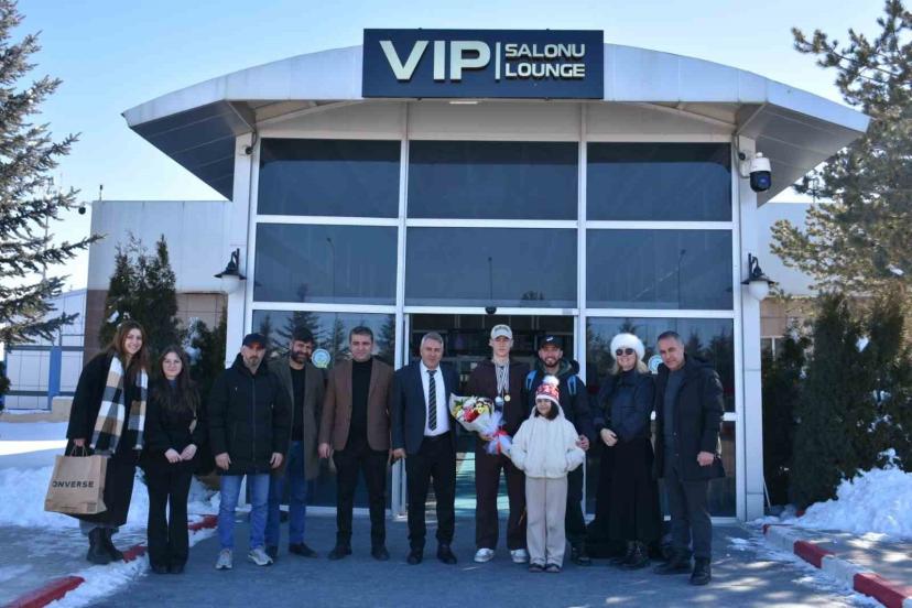 06-08 Mart 2026 tarihlerinde Macaristan’ın başkenti Budapeşte’de düzenlenen Avrupa Kupa Finali’nde milli gururumuz İlyas Karadağ pistleri adeta ateşe verdi. Tüm rakiplerine geride bırakarak Avrupa Kupası Finalinde şampiyonluk ipini göğüsleyen İlyas Karadağ, memleketi Erzurum’da çiçeklerle karşılandı. Antrenör Fatin Özden ile birlikte Erzurum Havalimanına iniş yapan Milli sporcuya Erzurum Gençlik ve Spor İl Müdürlüğü Sicil Lisans Şube Müdürü Hakan Kaya, çiçek takdim etti. Palkar Spor Başkanı Arif Karadağ, eşi Yulia Karadağ, Antrenör Önder Arslan ile sporcular da karşılama törenine katıldılar.