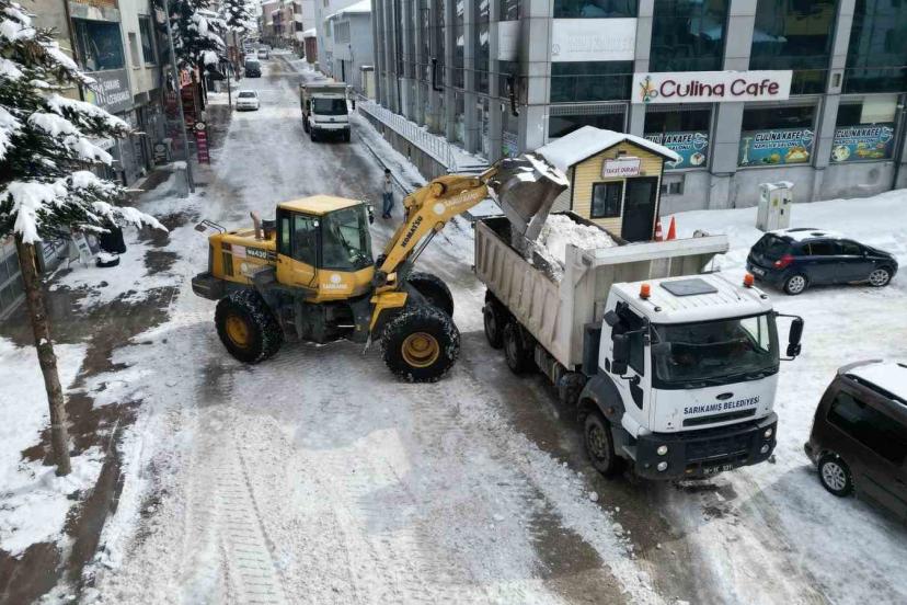 Çalışmalar kapsamında iş makineleriyle bir noktaya toplanan kar yığınları, kamyonlara yüklenerek ilçe dışındaki boş alanlara taşınıyor. Belediye ekiplerince 2 günde yaklaşık 600 kamyon kar ilçe merkezinden uzaklaştırıldı. Kar taşıma işlemlerinin, yolların genişletilmesi ve buzlanma riskine karşı kritik önem taşıdığı belirtildi.