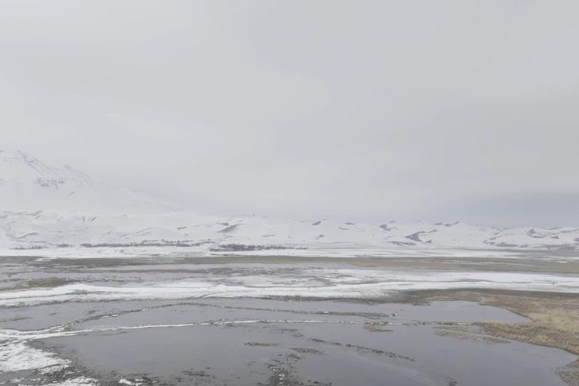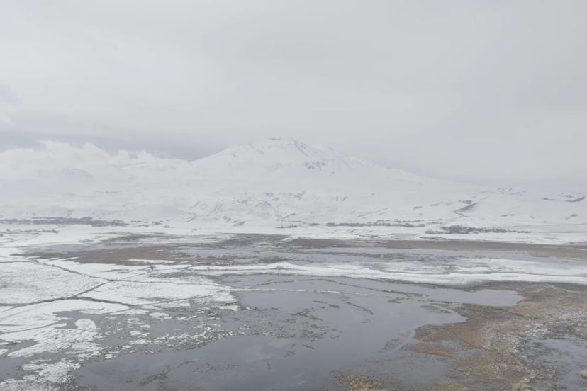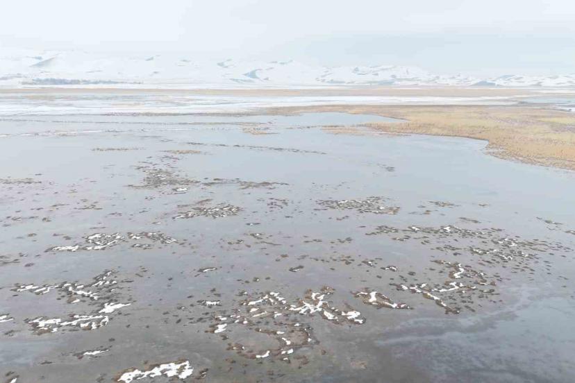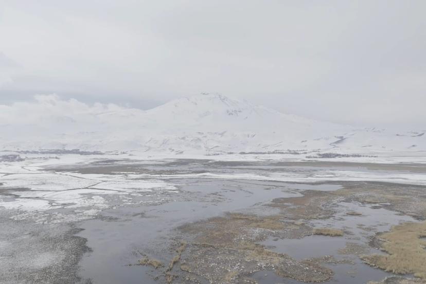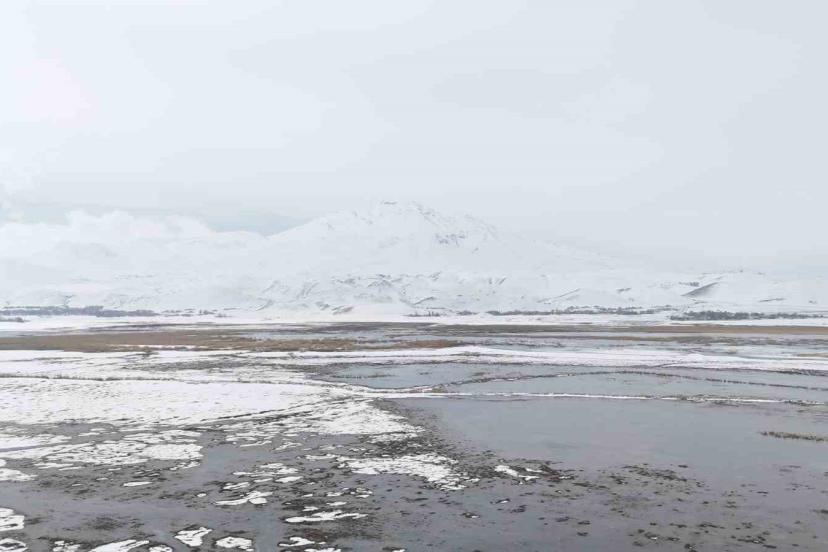 Bitlis’in Adilcevaz ilçesi ile Ağrı’nın Patnos ilçeleri arasında yer alan Sarısu sazlıkları, Süphan Dağı’nın karlı zirvesi göz kamaştırıyor.