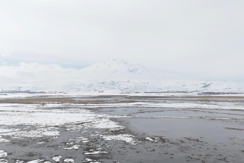 Sarısu sazlıkları ile Süphan Dağı’nın karlı zirvesi göz kamaştırıyor