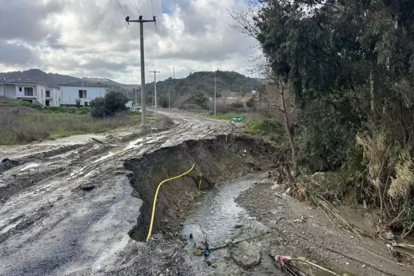Aydın'ın Söke ilçesinde bir kısmı çöken tali yol ulaşıma kapatıldı.