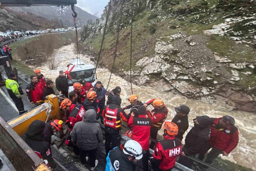 Hazo Deresi mevkiinde yaşanan kazada beton mikseri dereye uçmuştu. Vinç yardımıyla dereden çıkarılan araçta yapılan incelemede sürücüye ulaşılamamış ve sürücünün bulunduğu taraftaki camını kırık olduğu tespit edilmişti. Sel sularına kapılarak kaybolduğu değerlendirilen beton mikseri sürücüsü E.Ç.’nin aracın yakıt deposu kısmına sıkıştığı belirlendi. Ekipler tarafından bulunduğu yerden çıkarılan sürücünün hayatını kaybettiği tespit edildi. AFAD, jandarma ve gönüllü ekipler tarafından araçtan çıkarılan sürücünün cansız bedeni sağlık ekiplerine teslim edildi.