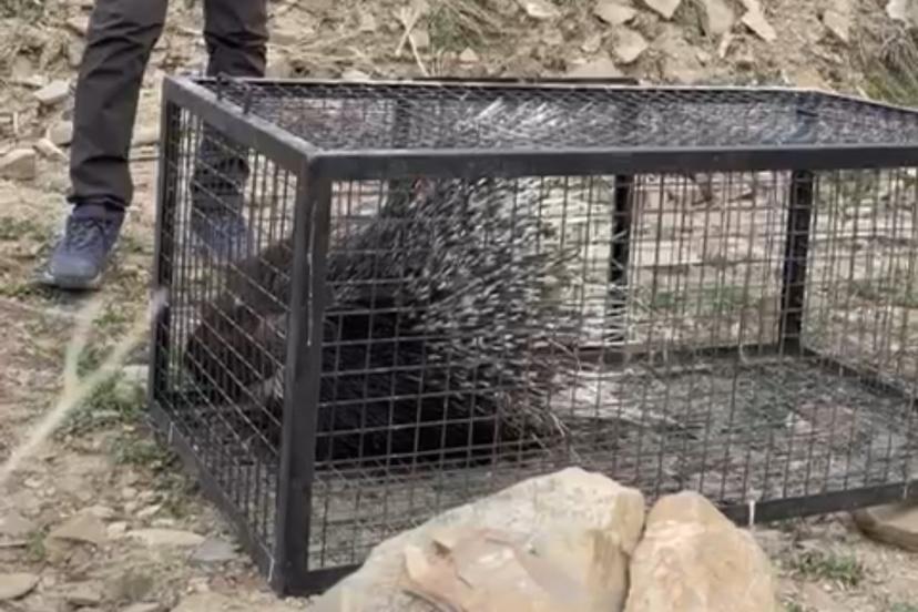 Hakkari’nin Yüksekova ilçesinde yaralı halde bulunan Hint oklu kirpi, Van’daki tedavisinin tamamlanmasının ardından doğal yaşam alanına bırakıldı.