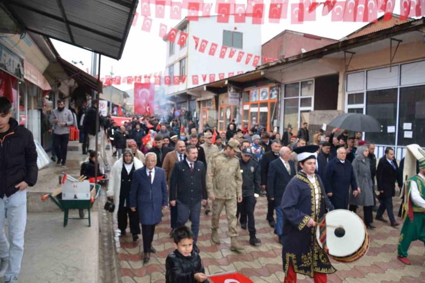 Program kapsamında ilçe merkezinde Türk bayrakları eşliğinde yürüyüş düzenlendi. Yürüyüşe protokol üyeleri, öğrenciler ve vatandaşlar katılırken, Erzincan Belediyesi mehteran takımı marşlarıyla etkinliğe renk kattı.
