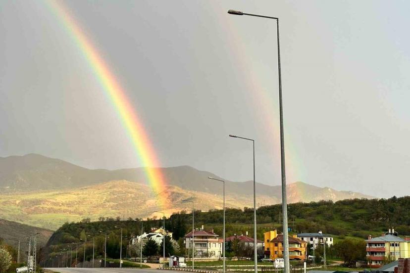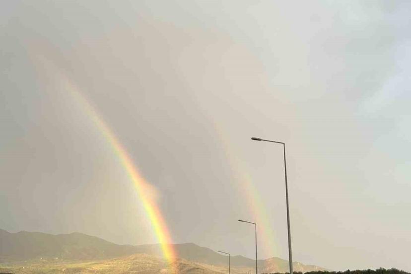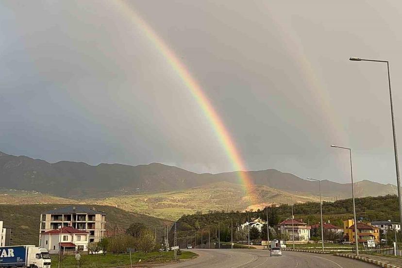 Tunceli’de etkili olan sağanak yağışın ardından gökyüzünde oluşan gökkuşağı, kentte görsel bir şölen sundu.