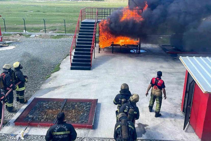 Erzincan’da üniversite öğrencilerine yönelik uygulamalı temel itfaiyecilik eğitimi veriliyor.