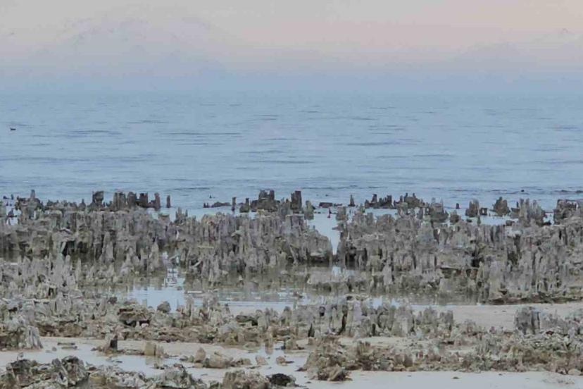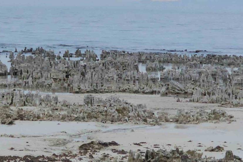 Türkiye’nin en büyük gölü olan Van Gölü’nün Adilcevaz sahilinde yaşanan yağışlara rağmen su seviyesinin düşmesiyle birlikte ortaya çıkan mikrobiyalitler dikkat çekiyor.