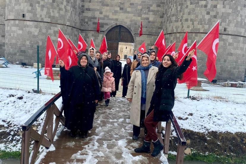 Kadınların yoğun ilgi gösterdiği etkinlikte, Türk bayrağı eşliğinde Van Kalesi’ne yürüyüş gerçekleştirildi. Etkinlikte vatan sevgisi ve milli mücadele ruhunun temsil ettiği vurgulanırken, kadınların milli değerlerin yaşatılmasındaki rolüne dikkat çekildi. Programda açıklamalarda bulunan Aile Destek Merkezi 13 Koordinatörü Hümeyra Şevgin, bayrağın sadece bir sembol olmadığını belirterek, "Bayrağımız bizim için bağımsızlığımızın, birliğimizin ve geçmişimizden emanet aldığımız kutsal bir değerin ifadesidir. Kadınlarla birlikte bu sevgiyi görünür kılmak ve tarihi bir mekân olan Van Kalesi’nde yaşatmak istedik. Bu ruhu kadınlarımızla birlikte geleceğe taşımak en büyük sorumluluğumuzdur" dedi.