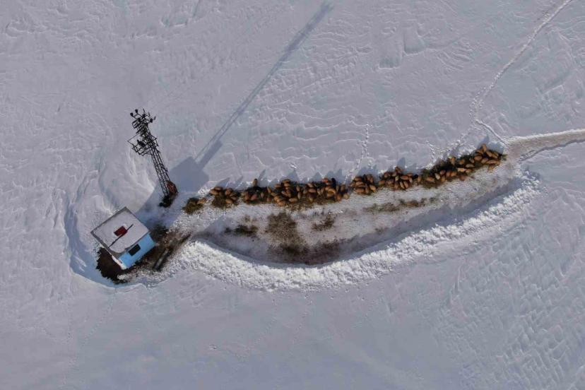 Kentte geceleri eksi 15 dereceye kadar düşen hava sıcaklığı hayatı olumsuz yönde etkiliyor. Çatak ilçesinde besiciler çetin kış şartları ve bölgenin zorlu coğrafyasına rağmen hayvanlarının bakımını ihmal etmiyor. Tek geçim kaynakları hayvanları için dondurucu soğukların etkili olduğu kırsalda tüm zorluklara göğüs geriyor. Yazın yaylalarda otlattıkları hayvanlarına kış boyunca ağıllarda bakan besiciler, gün içerisinde çıkardıkları hayvanlarına kar üzerinde yem veriyor. İlçeye 30 kilometre uzaklıktaki Teknecik Mahallesi’nde günün ilk ışıklarıyla işe koyulan besiciler, sırtlarında ve kızakla taşıdıkları otları, karın üzerine sererek günde 2 kez hayvanlarını besliyor, akşam saatlerinde ise yeniden ağıla götürüyor.