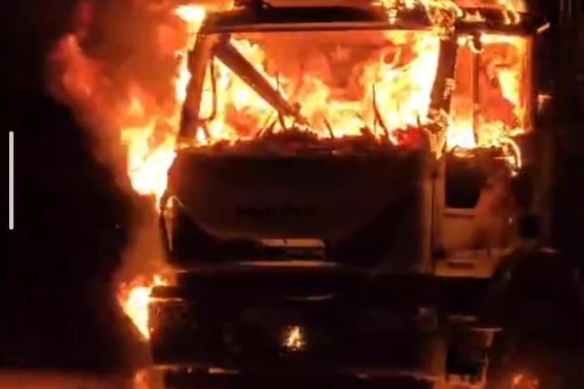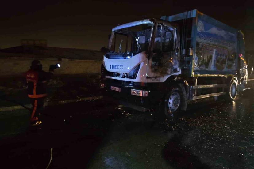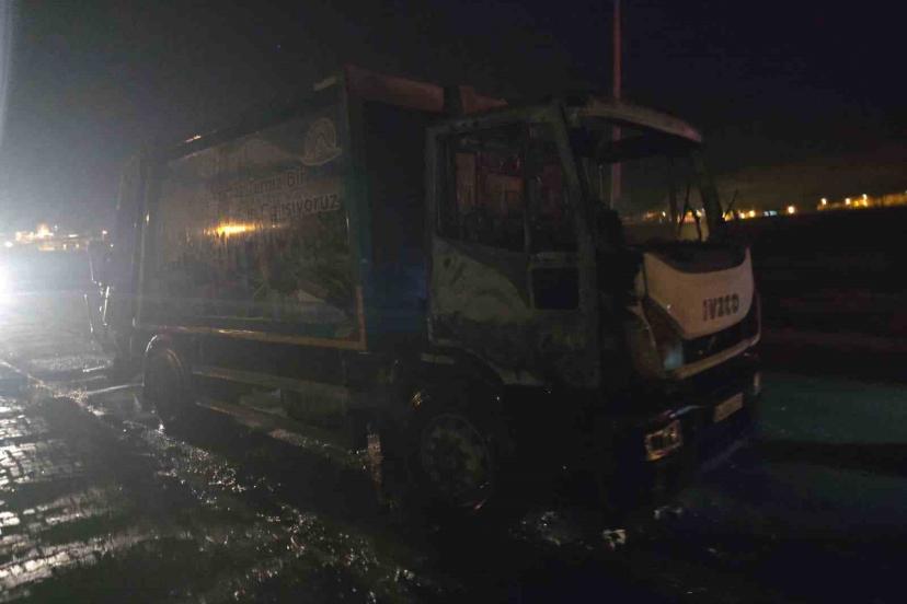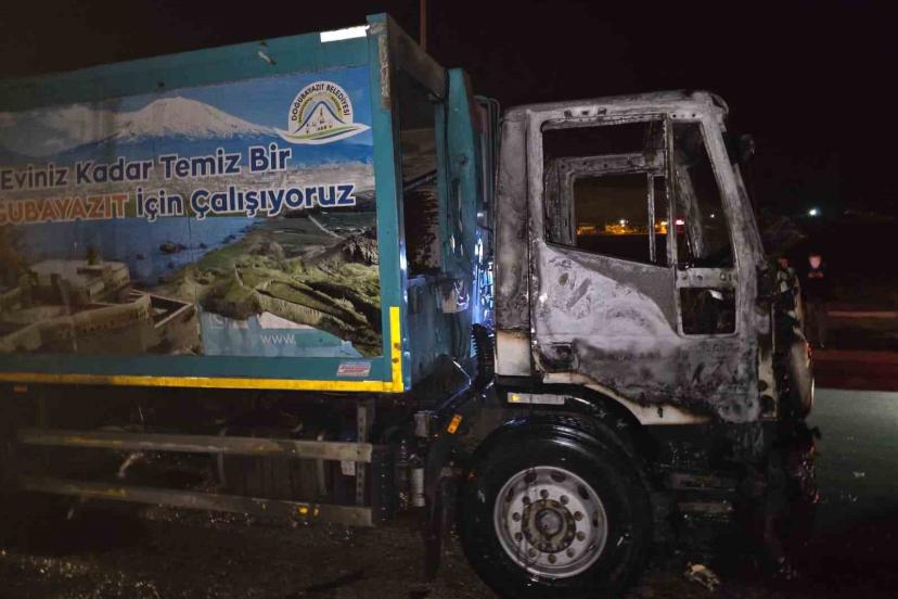Van’ın Tuşba ilçesine seyir halindeki belediyeye ait çöp kamyonu seyir halindeyken alev alev yandı.