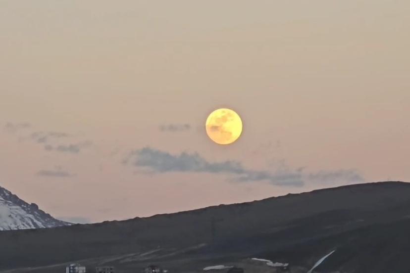 Nisan ayının ilk dolunayı olan ve adını baharda açan yabani çiçeklerden alan ’pembe dolunay’, akşam saatlerinde Erek Dağı’nın arkasından belirdi. Dağın karlı zirveleriyle birleşen dolunayın ışıltısı, gökyüzünü ve kentin silüetini aydınlattı. Gece boyunca etkisini sürdüren dolunay, izleyenleri mest etti. Kent sakinleri, bu tür doğa olaylarının Van’ın doğal güzelliklerine ayrı bir değer kattığını dile getirdi.