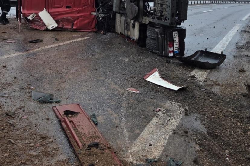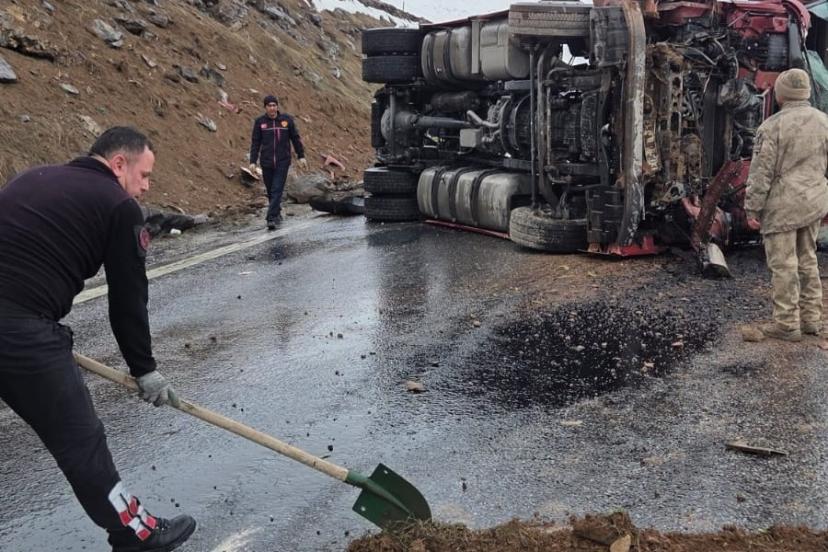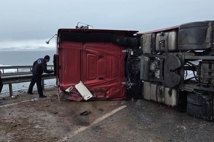 Van-Erciş kara yolunda tırın devrilmesi sonucu meydana gelen trafik kazasında 1 kişi yaralandı.