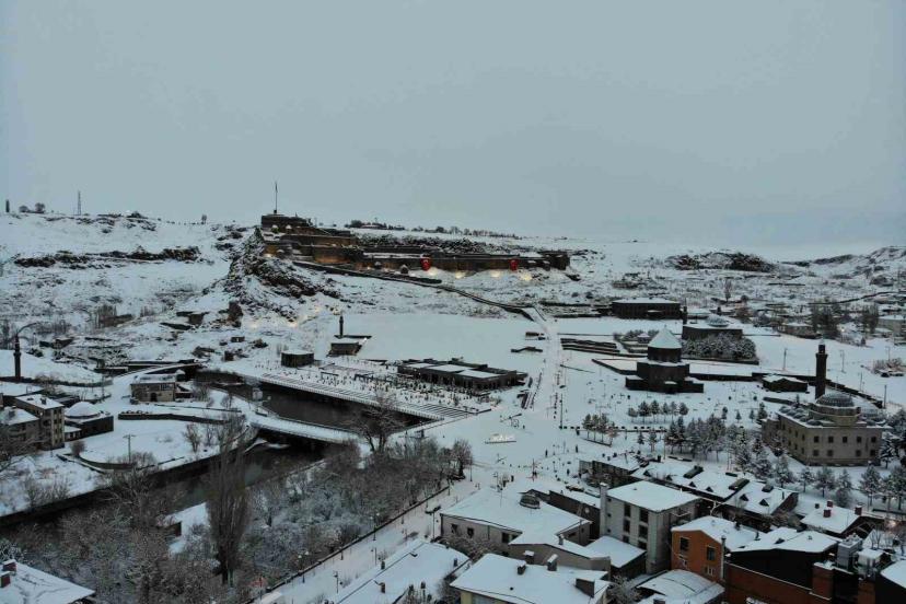 Öte yandan tarihi Kars Kalesi ve çevresindeki tescilli yapılar kar altında adeta birer kartpostallık görüntü oluşturdu. Ağaçların da beyaza bürünmesiyle birlikte Kars adeta görenleri büyüledi. Beyaza bürünen Kars İhlas Haber Ajansı (İHA) muhabiri tarafından dron ile havadan görüntülendi.