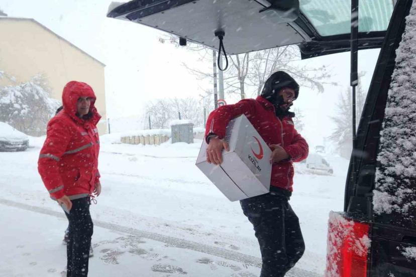 Zorlu kış şartlarına rağmen Pülümür’de hem hasta yatağı hem de Ramazan kolisi dağıtımı yapan Kızılay ekibi, yoğun kar yağışı nedeniyle yolda kaldı.