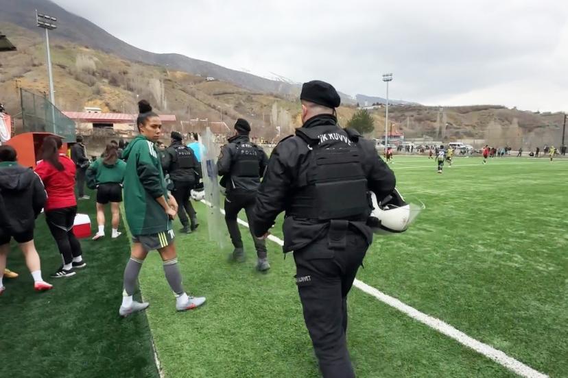 HAKKARİ (İHA) – Turkcell Kadın Futbol Süper Ligi’nin 24. haftasında oynanan Yüksekova Spor Kulübü ile Fenerbahçe arasında oynanan karşılaşmanın ilk dakikalarında çıkan gerginlik, güvenlik güçlerinin müdahalesiyle sonlandırıldı.