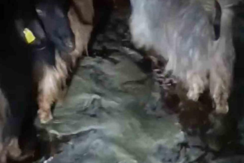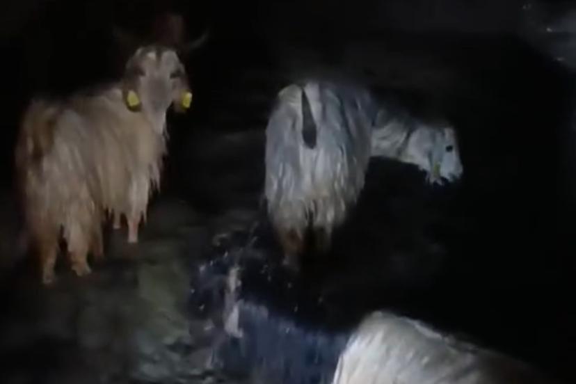 Hakkari’nin Yüksekova ilçesinde etkili olan sağanak yağış nedeniyle suyla dolan ahırdaki hayvanlar kurtarıldı.