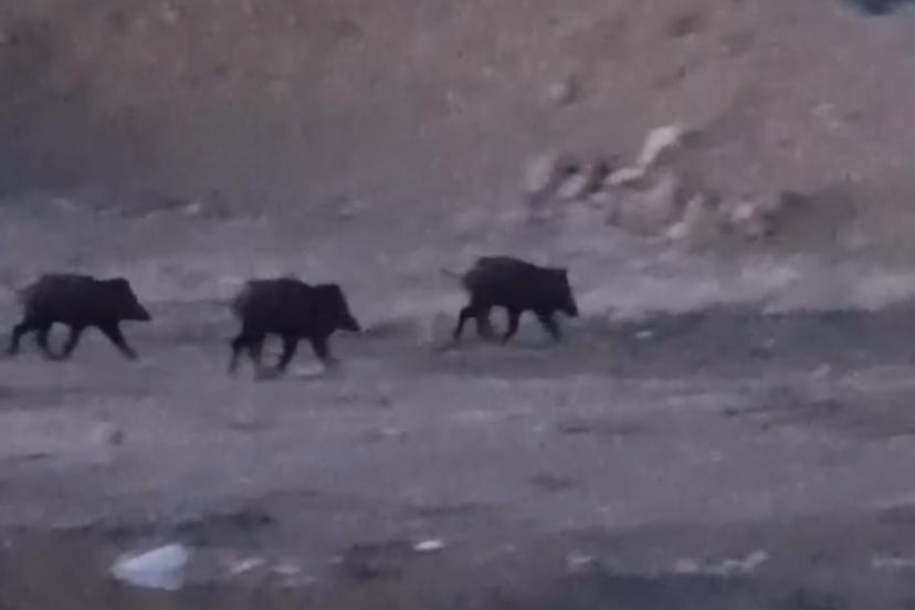 HAKKARİ (İHA) – Hakkari’nin Yüksekova ilçesinde sürü halinde dolaşan yaban domuzları, cep telefonu kamerasıyla kayıt altına alındı.