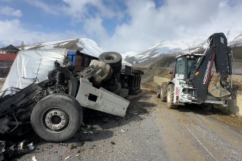 Yüksekova’da İran plakalı tır devrildi: 1 yaralı