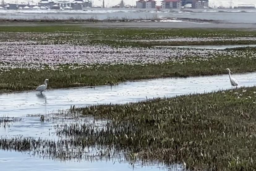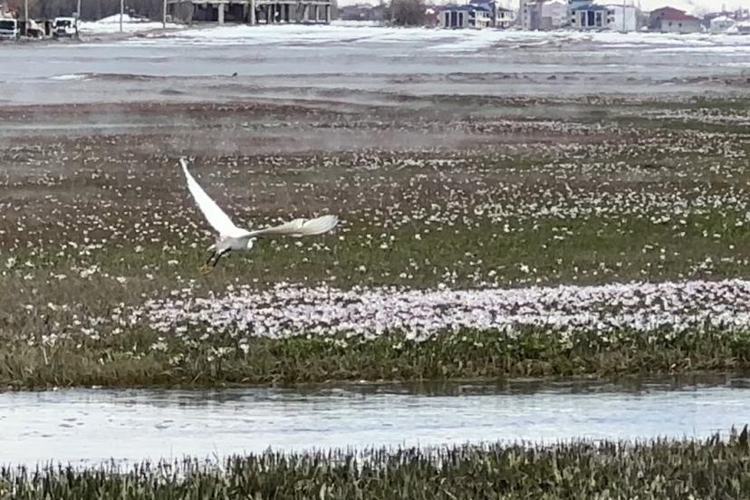 İlçeye 4 kilometre uzaklıktaki Aksu köyü civarında görüntülenen çok sayıda küçük akbalıkçıl kuşu, bir süre beslenmeye çalıştı. Açık arazideki bitki örtüsünün yoğun olduğu alanlarda yiyecek arayan kuşların, zaman zaman kısa mesafeli uçuşlar yaparak yer değiştirdikleri gözlendi. Topraktaki böcek ve larvalarla beslenen kuşlar, bir süre sonra bölgeden ayrılarak gözden kayboldu.