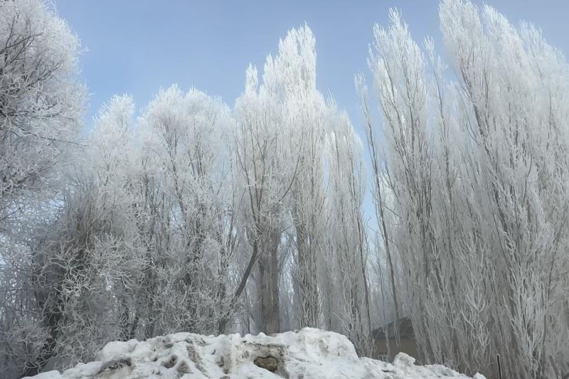 Hakkari genelinde etkili olan soğuk hava dalgası, Yüksekova ilçesinde doğayı beyaza bürüdü. Gece saatlerinde termometrelerin sıfırın altına düşmesiyle birlikte oluşan yoğun sis, yerini seyri doyumsuz bir kırağı tabakasına bıraktı.
