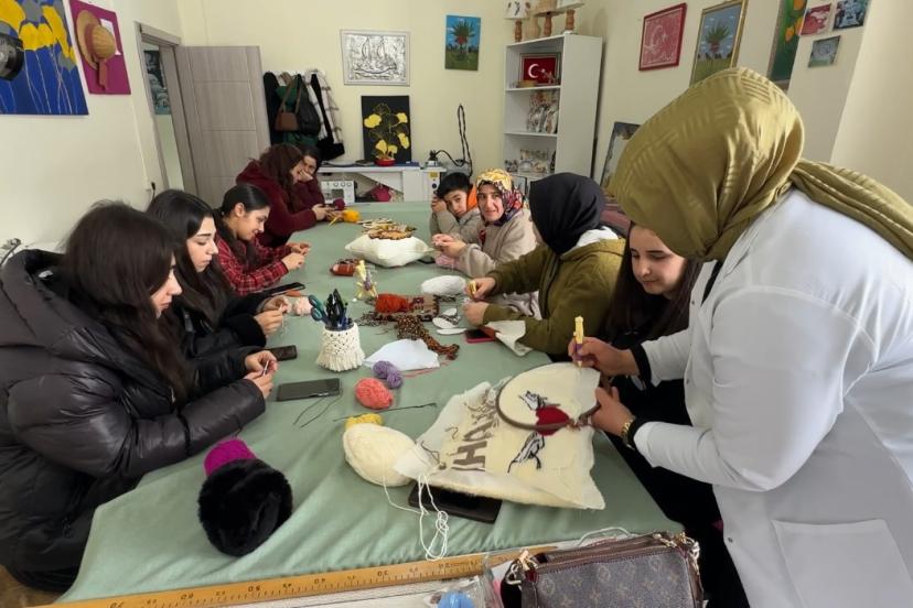 Merkezin bir diğer ilgi odağı olan el sanatları kursunda ise "punch" nakış tekniği kullanılarak çanta, yastık, oyuncak ve dekoratif çiçekler üretiliyor. Kursiyerler, bu sayede hem modern teknikleri öğreniyor hem de estetik ürünler ortaya koyuyor. Usta öğretici Saynur Bingöl, merkezde yürütülen çalışmaların önemine değinerek, "İki kursumuzda toplam 30 kadınımız geri dönüşümle çok güzel ürünler üretiyor. Öğrencilerimiz meslek öğrenmenin yanı sıra aile bütçelerine maddi destek de sağlıyorlar. Kursların en güzel yanı ise kadınların sosyalleşmesi. Buradan eğitim alan kadınlar, ileride kendi iş yerlerini açabilecek donanıma ulaşıyorlar" dedi.