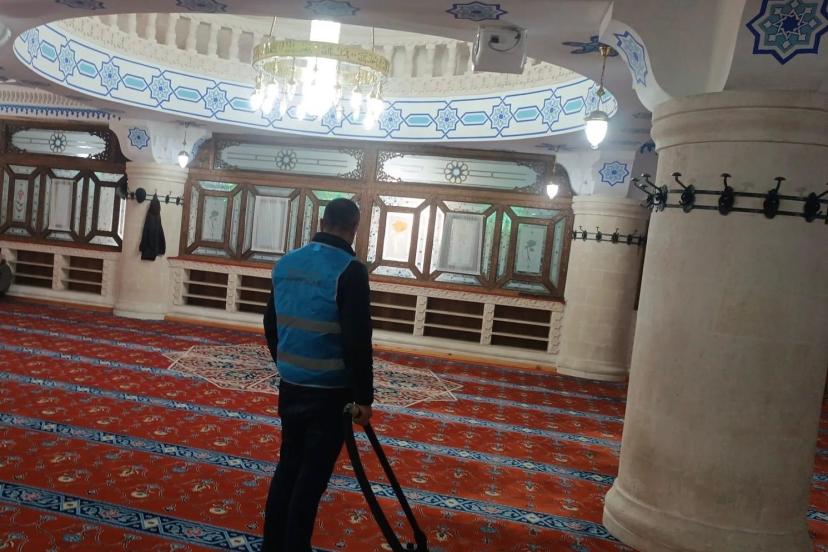Bitlis’in Tatvan ilçesindeki yükümlüler tarafından camilerde temizlik ve bakım çalışması gerçekleştiriliyor.